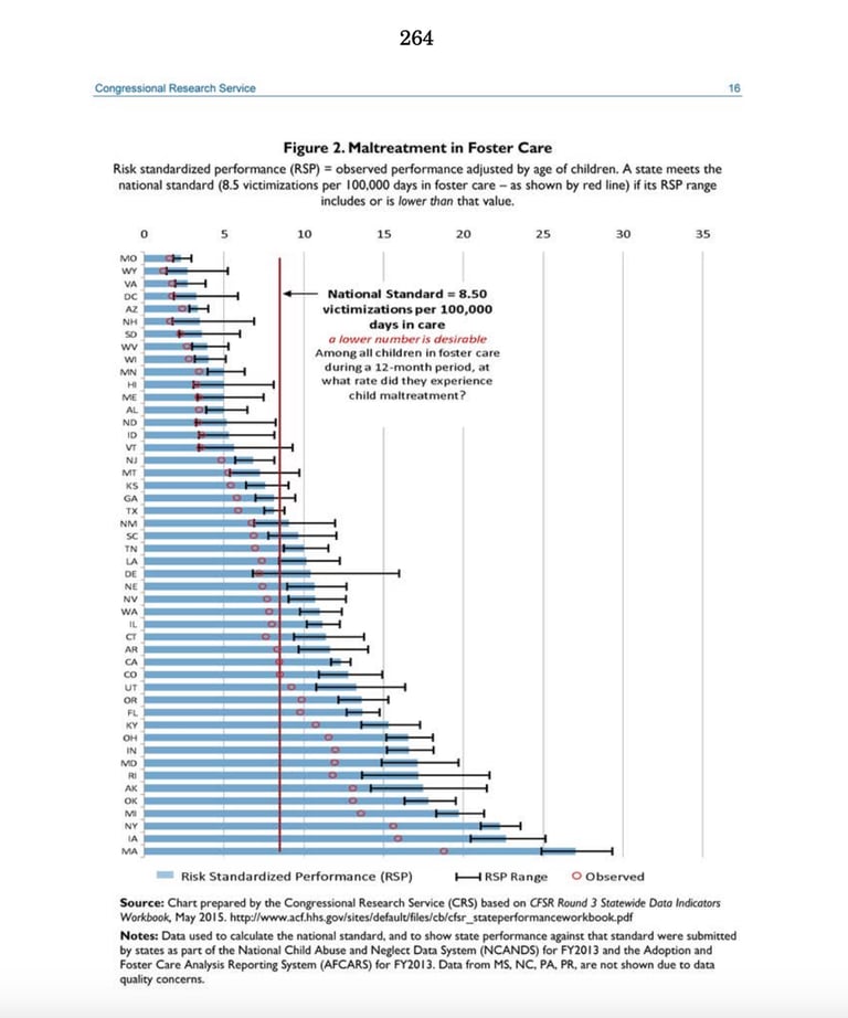 Research studies, statistical analyses, and Senator Orrin Hatch's report in 2017 illustrate the alarming number of Americans who were and to this day are harmed by AFSA. The proof or harm has been not only ignored, but suppressed, and obfuscated. Legitimate Academic research that proved children left in troubled homes fair better than foster care was ignored to keep the flow of Title IV-E money into states.